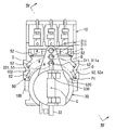 図2に示すようにマグネット32は、軸受中心線Cを径方向に挟む両側に、それぞれ一つずつ設けられている。各マグネット32は、例えばフェライト磁石等の強磁性金属材料により扇形柱状に形成されている。各マグネット32は、回転本体31の内部に一体回転可能に埋設されている。各マグネット32は、固定軸受101に対して作用させる磁界を、共同して発生する。   As shown in FIG. 2, one magnet 32 is provided on each of both sides of the bearing center line C in the radial direction. Each magnet 32 is formed in a sector column shape by a ferromagnetic metal material such as a ferrite magnet. Each magnet 32 is embedded in the rotary body 31 so as to be integrally rotatable. Each magnet 32 jointly generates a magnetic field that acts on the fixed bearing 101.