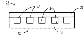 つぎに、増倍材ブロック22の製造プロセスを、図6に沿って説明する。粗密収納体23の一部を構成する円柱状の粗密収納容器本体33の上面に、ペレット24を1個ずつ収容する複数の穴(くぼみ)34を形成しておく。これらの穴34は互いに間隔をあけて平面的に分散して配置する。また、各穴34の形状および大きさはペレット24の形状および大きさに合わせ、なるべく隙間があかないような設計とする。つぎに、これらの穴34にペレット24を挿入する。つぎに、粗密収納容器本体33の上面に円板状の粗密収納容器蓋35を被せて、すべてのペレット24含めて粗密収納容器本体33の上面を覆い、密閉する。このとき、粗密収納容器本体33と粗密収納容器蓋35とによって粗密収納体23が構成される。