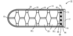 図3に示すように、各増倍材ブロック22は、粗密収納体23と、粗密収納体23内に収納されて密閉された複数のリチウム‐ベリリウムペレット(以下、単に「ペレット」とも呼ぶ)24とを有する。粗密収納体23は、たとえば密度(充填率)80〜90%程度の粗密ベリリウム製である。各粗密収納体23内で、複数のペレット24が互いに間隔をあけて、軸に垂直な一つの平面内で分散して配置されている。
