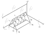 〈8〉 図16は、図15の構造の更なる改良で、縦支持フレーム14夫々に、上下複数個ずつ蓄熱カプセル1を取り付けてあって、夫々が縦軸心周りに回転自在にしてある。また、蓄熱カプセル1をその上下に取り付ける数は、2個以上であっても良い。