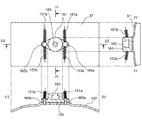また、大腿部アーム部材33の下端部にはスライド機構150を介して大腿部装着部37が連結されている。スライド機構150は、大腿部アーム部材33と大腿部装着部37とを人体の大腿部の長さ方向へ相対的にスライド可能に連結する。大腿部装着部37には、人体の大腿部に沿って下方に延びる支持部材44が連結されている。支持部材44には、膝部関節部40を介して下腿部アーム部材35が相対回転可能に連結されている。かかる下腿部アーム部材35は、上方側下腿部装着部41及び下方側下腿部装着部42により人体の下腿部に対して固定されている。