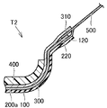 樹脂層400は、センサフィルム200a、センサフィルム200bおよび複数の機能層300を覆うように、ベースフィルム100の内面110bおよび最もZ方向側の機能層300(第2近傍の中間層)の双方に(図5Kおよび図5L参照)、またはベースフィルム100の内面110bおよびセンサフィルム200b(第2近傍の中間層)の双方(図5M参照)に固定されている。
