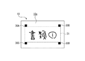 タグ表示30A〜30Dは、それぞれ異なる模様を備えた矩形状であり、それぞれが異なる情報を示すタグとなっており、タグ表示30A〜30Dに取り囲まれた部分が識別情報を記載可能な表示領域31となっている。図6ではタグ表示30Aは表示領域31の左上端部を規定し、タグ表示30Bは表示領域31の右上端部を規定し、タグ表示30Cは表示領域31の左下端部を規定し、タグ表示30Dは表示領域31の右下端部を規定している。表示領域31には、手書きにて識別情報を記載可能である(図6では「書類1」と記載されている)。手書きの場合、厳密に一致する図案はほぼ無いといえ、固有の識別情報として利用可能である。尚、手書きに代えて、特徴ある形状のシールを表示領域31に貼着してもよく、この場合も貼着されたシールの角度や位置が厳密に再現されることはほぼ無いといえ、固有の識別情報として利用可能である。更に尚、表示領域31にはプリンタ等を用いて特徴ある画像を印刷することで、この画像を識別情報として利用してもよい。