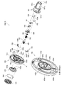 外枠下組立体40は、幕板前部材42及び幕板後部材43の上面に左右に離間して配置されている一対の案内部材45と、幕板前部材42の開口部42aを後側から閉鎖している平板状のグリル部材46と、グリル部材46を挟んで開口部42aを閉鎖するように幕板前部材42の内部に取付けられており前後に延びた二つの円筒を有したポート部材47と、幕板後部材43の接続筒部43aの上端に配置される枠状のシール部材48と、を備えている。