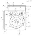 図1に示すように、インバータ収容部3は、径方向において回転電機収容部2に隣室して配置されている。インバータ収容部3において回転電機収容部2に隣室する側には、回転電機収容部2の周壁部23から径方向に延びるように側壁部33が形成されている。インバータ収容部3において回転電機収容部2に隣室する側とは反対側には、第2開口部31が形成されており、図2に示すように、当該第2開口部31を塞ぐように第2カバー部12が取り付けられている。また、インバータ収容部3において回転電機収容部2に隣室する側には、後述する隔壁10が位置している。インバータ収容室30は、側壁部33と、第2カバー部12と、隔壁10とによって囲まれた空間として形成されている。