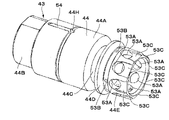 パイロットハウジング36は、ハウジング23と共に流量制御弁33のケーシング(弁ケーシング22)を構成している。パイロットハウジング36は、ハウジング23の弁体摺動穴34を外側から閉塞するようにハウジング23の外側面に設けられている。パイロットハウジング36には、後述の主弁43および弁ばね48が収容される凹部37と、後述のパイロット弁55等が収容される弁収容穴38と、この弁収容穴38と凹部37との間を連通する第1の通路39と、ハウジング23の分岐通路35と弁収容穴38との間を斜めに傾斜して延びパイロット弁55により第1の通路39に対して連通,遮断される第2の通路40と、パイロット圧の給排ポート41とが設けられている。給排ポート41は、弁収容穴38の内面とパイロット弁55とにより画成されたパイロット室57に接続されている。
