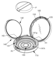 さらに、本発明のさらに別の目的は、鏡がホルダーリングに固着されることにより、上ケースの内周面とホルダーリングとの間に別途の銘板を介在することが可能になることから、銘板が取り替え自由なエコ化粧品容器を提供するところにある。 Furthermore, another object of the present invention is that by fixing the mirror to the holder ring, it becomes possible to interpose a separate name plate between the inner peripheral surface of the upper case and the holder ring. provides replaceable eco-cosmetic containers.
