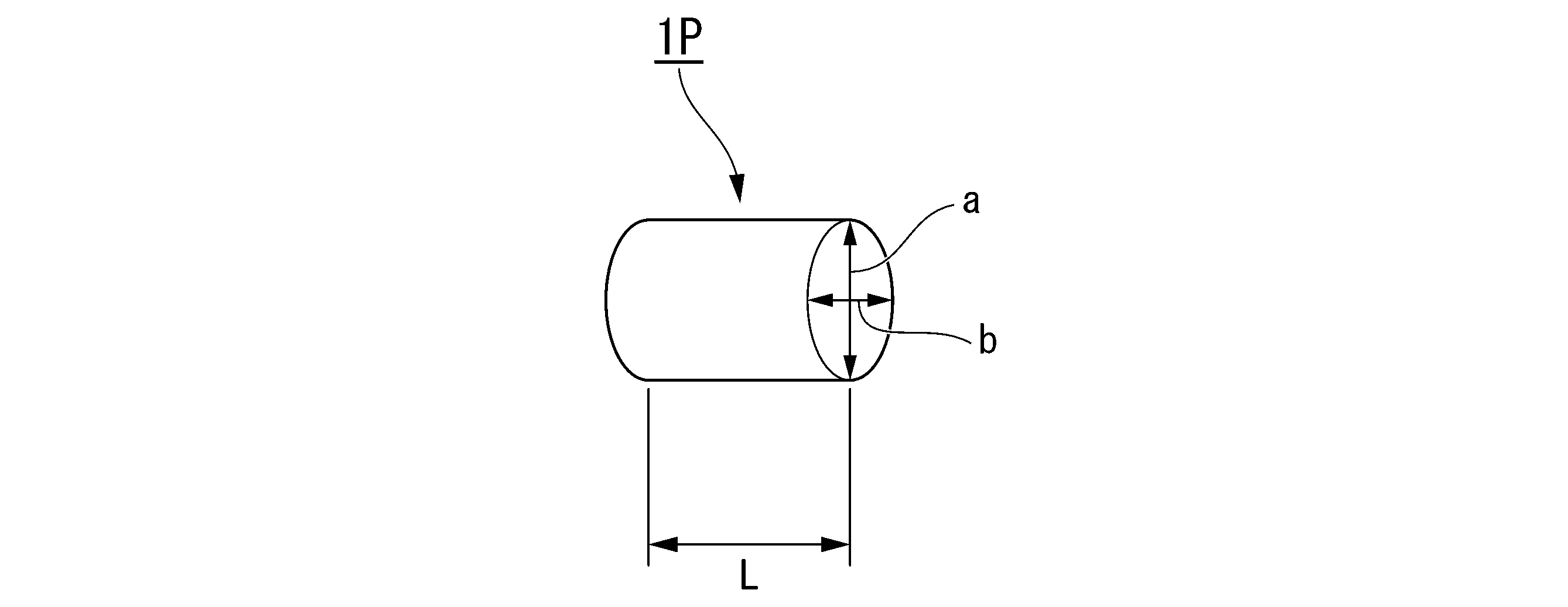 ペレット1Pの径は、この端面に外接する長方形の各辺の長さとする。外接する長方形は、当該長方形の面積が最小になるように設定される。この端面に外接する長方形の長辺の長さは、楕円形状の長径(a)に相当し、当該長方形の短辺の長さは、楕円形状の短径(b)に相当する。