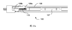 図6に示すように、負荷ユニットの型を識別するための認識部100aは、長尺体アセンブリ100の外側シェル105内に摺動可能なように配置された第1の摺動部材101と、第1の摺動部材101と共に摺動するように作動され得る、第1の摺動部材101上に配置された第1のトリガ部材102と、長尺体アセンブリ100の外側シェル105内に取り付けられ、当該長尺体アセンブリ100に対して固定された第1の回路基板103と、第1の回路基板103からのフィードバック信号によって負荷ユニット200の型を判定するように構成されたコントローラと、を備える。第1の摺動部材101および第1の回路基板103の具体的な取り付け位置は固有のものではなく、第1の摺動部材および第1の回路基板は、長尺体アセンブリ100の外側シェル105に、または長尺体アセンブリ100の外側シェル105の内側のフレーム107に選択的に接続され得る。