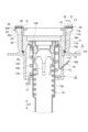 ガスバルブ13bは、飲料流路15dへの炭酸ガスGの侵入を阻止するために設けられる。ガスバルブ13bは、ダウンチューブ15の上端に配置されている。ガスバルブスプリング14bは、ガスバルブ13bを上方に付勢するために設けられる。ガスバルブスプリング14bは、リテイニングディスク17とフランジ部15jとの間に配置されている。リテイニングディスク17は、ブッシュ11の底面11hを画成するとともにブッシュ11の下端に位置する爪部11pに装着される。