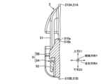 この下側分割体本体310Bには、図1、3に示すように、シェル本体21に設けられた被係止部24を挿通させる挿通部315が設けられている。挿通部315は、図6に示すように、下側凹溝部30Bの下方Z2に位置しているとともに、下側分割体本体310Bの下面(シェル本体21の底壁21Bに接触可能な面)において前後方向Yに延在する凹溝状に形成されている。