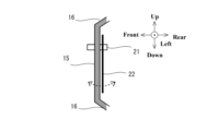 また、平面状の取付面部15に対して、平板状のライセンスプレート22を取り付ける場合、図6に示すように、平板状のライセンスプレート22は、振動する可能性がある。たとえば自動車1がアイドリングしている場合、自動車1が走行している場合、開いていたリアゲート10を閉じた場合、などにおいて、平板状のライセンスプレート22は、振動する可能性がある。この平板状のライセンスプレート22の振動は、インナパネル11とアウタパネル12とが重ね合わされてなるリアゲート10において増幅されて、自動車1の車室3に伝わる可能性がある。車室3に伝わった音は、異音として、自動車1の乗員に可聴され得る。乗員は、リアゲート10からの所謂ビレ音を可聴する可能性がある。