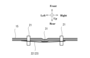 円弧状の第二ビード部32は、図7に示すように、取付面部15において、左右一対の支持孔17の下側に形成される。円弧状の第二ビード部32は、取付面部15において、左右一対の支持孔17と自動車1の上下方向において並ぶように形成される。