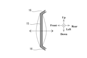 なお、取付面部15は、基本的に、略四角形の平面状となるように枠部16により囲われる。この場合、平面状の取付面部15は、たとえば、略四角形の対角の長さに対応する固有周波数、図5のように略四角形の上縁から下縁までの長さに対応する固有周波数、略四角形の右縁から左縁までの長さに対応する固有周波数について共振し易いと考えられる。平面状の取付面部15は、いずれかの固有周波数の振動が入力されると、上述する各方向の軸において共振して振動し、取付面部15の全体において大きく振動し易くなると考えられる。
