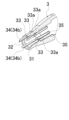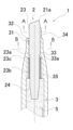 軸筒3は、先細状の前端部を有する円筒体であり、合成樹脂(例えばポリプロピレン)の射出成形により得られる。軸筒3の前端部には、前端孔31が軸方向に貫設される。前端孔31は、軸筒3の前端開口部32より外部に開口される。