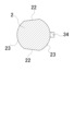 ペン先2の頂面21は、軸線に対して非垂直面(即ち軸線に対して直角でない面)よりなる。それにより、ペン先2の頂面21の一端(図8におけるペン先2の頂面21の右側端部)は、細長の頂面21の他端より前方に位置され、ペン先2の最先端部21aを構成する。尚、本発明の軸線は、ペン先2の円柱状外面23(大径部23a、小径部23b)及び軸筒3の中心を長手方向に伸びる。