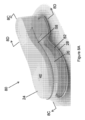 例示されている実施形態において、アウトソール部分28及びミッドソール部分26の底部は、それらのそれぞれの周辺の少なくとも一部の周りに延びる嵌合取り付け機構62及び64を有する。例えば、アウトソール部分28の周りの取り付け機構62は、アウトソール部分28の表面から上向きに延びる突起66を含む。突起66は、連続した突起、又はアウトソール部分28の周りに位置決めされた複数のセグメントであり得る。ミッドソール部分26の底部の取り付け機構64は、嵌合する実はぎ式の係合で突起66をしっかりと受容する溝68を有する。例示されている実施形態は、アウトソール部分28上の突起66及びミッドソール部分26上の溝68を示しているが、他の実施形態において、突起66は、ミッドソール部分26の底部にあってよく、溝68は、アウトソール部分28上にあってよい。