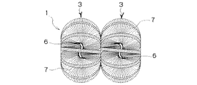 ブラシ本体3は、金属製の心線6の周りに毛材7を植設して構成されている。即ち、ブラシ本体3は、2本の心線材の相互間に毛材7を挟み、心線材を撚って構成される。毛材7は心線6の周りに螺旋状に連続した並びとなる。ほぼ平行なブラシ本体3,3の相互間隔は、互いの毛材7,7の先端部分が接し、あるいは重合する程度になっている。図5,図6に示すように、金属心線6の基端部は、把手2の両端の管状部に挿入され、かしめ止めされている。心線6の基端部は、把手2の両端の管状部に着脱自在に挿入するように構成することもできる。この場合、個別交換でき経済的である。金属心線6の先端部は、基端寄りの位置から把手2の延伸面に対して一方へ直交方向に膨出し、これより先端側の位置で反対方向へ戻るように円弧状に湾曲して終結している。