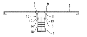 また、シーリングライト本体3は、図2及び図4に示すように、天井面に設置されている引掛けシーリング(図示せず)に、引掛刃4を用いて固定できる引掛シーリングアダプター5の平板部6へネジ等の適宜の手段によって取り付けられる。