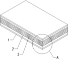 図1~図4に示すように、本考案のサポート性の高い空気掛け布団は、2つの生地層1と、中綿層2と、柔らかさの高い立体構造織物3と、を含み、柔らかさの高い立体構造織物3は、中綿層2の間に設けられ、中綿層2は、2つの生地層1の間に設けられる。