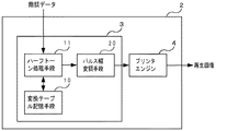 前記変換テーブルは、少なくとも、階調データと現像面積情報との関係を定めるガンマテーブルと、前記ガンマテーブルを特定する識別子をマトリクス上の位置に対応づけたインデックスマトリクスとを含んで構成されていることが好ましい。