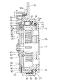 上記保持器24は、固定輪11の外径で案内され、その一側には固定輪11と軸方向で対向するフランジ26が設けられている。保持器24は、フランジ26が固定輪11と接近する方向への移動時、回転輪12の内部に組込まれた弾性部材27を弾性変形させるようになっており、弾性部材27は形状復元する弾性力によって保持器24を元の位置に戻すようになっている。