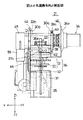 該回動台座の下面に取り付けてあり、モータ(36)と、水平支持板(52)と、中央に雌ねじ部(54a)を有し、上記水平支持板上に位置して上記モータによって回転される送り用ギヤ(54)とを有する駆動ユニットと、