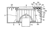 以上に述べた第1の実施の形態において、モータ9によって遠心多翼ファン5が回転して送風するときの風の流れについて、図3、図4を用いて説明する。