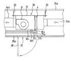 換気ユニット30の筺体32の内部には、上記各熱回収器4a、4bと、換気用送風機31が配設されている。そして、図3に示すように、家屋の一階の天井35bには、当該天井35bの一部となる保守点検蓋38が設けられると共に、上記筺体32に相対する部位の天井35bの一部に保守点検用の開口部39を設け、この開口部39を上記保守点検蓋38が開閉自在に閉塞する構成としている。