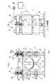 上支持枠4、下支持枠7は基台8に立てた支柱6で上下摺動可能に支持されている。ウォームギヤ11を備えた梁枠10が上支持枠4の上方で支柱6に固定され、上支持枠4は、ウォームギヤ11に噛合する昇降ギヤロッド12を有し、この噛合によって高さ位置調節可能に支持されている。ウォームギヤ11の回転はACサーボモータ13により駆動される。なお、下支持枠7は基台8に固定したジャッキ9によって高さ位置調節可能に支持されている。