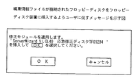 他方、ステップS2の判定結果がYESであると、ステップS4は、ユーザに、運用情報ファイル41が格納されたフロッピーディスクをフロッピーディスク装置4に挿入するよう促すメッセージを、ディスプレイ102上に表示する。ユーザがフロッピーディスクをフロッピーディスク装置4に挿入すると、ステップS5は、運用情報ファイル41を読み込み、一次記憶装置2内へ運用情報21として格納する。運用情報ファイル41には、編集箇所を示すソフトウェア編集情報22等が含まれる。