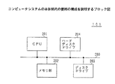 図2は、コンピュータシステム100の本体部101内の要部の構成を説明するブロック図である。同図中、本体部101は、大略バス200により接続されたCPU201と、RAMやROM等からなるメモリ部202と、ディスク110用のディスクドライブ203と、ハードディスクドライブ204とからなる。例えば、ディスクドライブ203は、フロッピーディスク用のドライブ部と、CD−ROM用のドライブ部とからなる構成であっても良い。ディスプレイ102、キーボード103、マウス104等は、バス200を介してCPU201に接続されていても、直接CPU201に接続されていても良い。