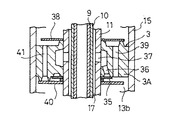 また、29は、上記外筒16の下端開口をピストンロッド11外周に接するオイルシール30を介して塞ぐキャップ、31は、このキャップ29の内側面中央部に保持されて、上記シリンダ15の下端を密閉するベアリングで、このベアリング31の中心部および上記オイルシール30には上記ピストンロッド11が摺動自在にかつ油密的に支承されている。