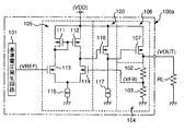 一方、図4は、従来のボルテージレギュレータの他の回路例を示した図であり、図4のボルテージレギュレータ100aは、図3の差動増幅段105と出力段106との間に、PMOSトランジスタ116及び定電流源117で構成された増幅段120を追加した3段の増幅段を備えるレギュレータであり、出力電圧VOUTの高速な制御を行うことができる。