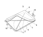 上記下面材7の外周縁には、適宜折り返した縁取り材9を被覆、縫着するとともに、相対する2辺には環状にした取付用紐10…をそれぞれ2個ずつ取り付けている。