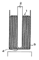図3に示す電池は、ニッケル−水素電池、ニッケル−カドミウム電池、リチウムイオン電池等の二次電池であって、円筒状の外装缶5と、この外装缶5に挿入している電極体1と、電極体1を外装缶5に接続するリード板3、4とを備える。図に示す電池は、外装缶を円筒状としているが、本発明は、電池の外装缶を円筒状に特定しない。外装缶は、図示しないが、たとえば、四角筒状ないし楕円筒状とすることもできる。