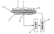 図1において、1は誘導加熱を行うための加熱コイル、5は制御手段で、温度検知手段4によって、天板であるトッププレート2を介して測定された調理板としての焼き肉プレート9の温度を測定し、高周波電源6の出力を制御する。