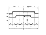 図7は1サンプル期間内のスイッチングパターンである。スイッチングには、UPモードとDOWNモードが存在し、UPモードはPWM信号がLOからHIに切り替わるモード、DOWNモードはPWM信号がHIからLOに切り替わるモードである。また、PWM信号がHIに接続された時、インバ一タのスイッチはONとなるものとする。UPモードでは、T0は最大電圧の相のPWM信号がLOからHIに切り替わるまでの時間、T1は中間電圧の相のPWM信号がLOからHIに切り替わるまでの時間、T2は最小電圧の相のPWM信号がLOからHIに切り替わるまでの時間と定義する。DOWNモードでは、T0は最大電圧の相のPWM信号がHIからLOに切り替わるまでの時間、T1は中間電圧の相のPWM信号がHIからLOに切り替わるまでの時間、T2は最小電圧の相のPWM信号がHIからLOに切り替わるまでの時間と定義する。