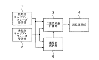 同様に、未知点キャリア・フェーズ受信部2は、未知点キャリア・フェーズ信号を二重位相差計算部3及び基準衛星選択部5へ出力するもので、空中線を含むGLONASS衛星用受信機そのもので構成しても良いし、未知点に設置したGLONASS衛星用受信機からの未知点キャリア・フェーズ信号を通信回線を経由して受信するタイプの通信用受信機で構成しても良い。