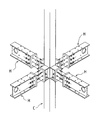 【図6】図1の鉄骨構造体を形成する鉄骨柱および鉄骨梁にそれぞれ固定された支持部材、下部取付部材および上部取付部材を示す斜視図である。