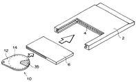 従来、デジタルスチルカメラ、デジタルビデオカメラ、ノートパソコン等の電子機器のカードスロットには、種々の記録メディアが挿抜可能に装填され、記録再生をするようになっている。このような記録媒体としては、半導体メモリタイプのもの、ハードディスク型のもの、光ディスク型のもの、フロッピー(登録商標)ディスクのような磁気ディスクの小型のもの等、各種のものが実用に供されている。