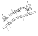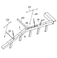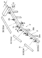 乗客コンベアの構造概略を図18に示す。図18に示すように乗客コンベアは建物の下階部から上階部に向けて設置された本体枠2を有している。本体枠2の上梁3には、ボルトまたは溶接によりベース1が取り付けられており、このベース1には図18および図19に示すように欄干4を支持するホネ5が取り付けられている。