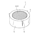 図1は、本発明による回折光学素子を示す斜視図である。同図に示す回折光学素子1は、アクリル等のプラスチック樹脂を、射出成形、トランスファ成形等して製造され、4〜5mmの外径を有する。この回折光学素子1は、CD、DVD再生装置等に含まれる光学式ピックアップ(図示せず)に装着することを主目的としたものである。同図に示すように、回折光学素子1の中央部には、回折格子2を備えた光学機能部3が形成されている。回折格子2は、回折光学素子1の表面及び裏面に形成された微少な凹凸からなり、レーザーダイオード等(図示せず)から出射した光を回折させ、メインビーム及びサブビームに振り分ける。