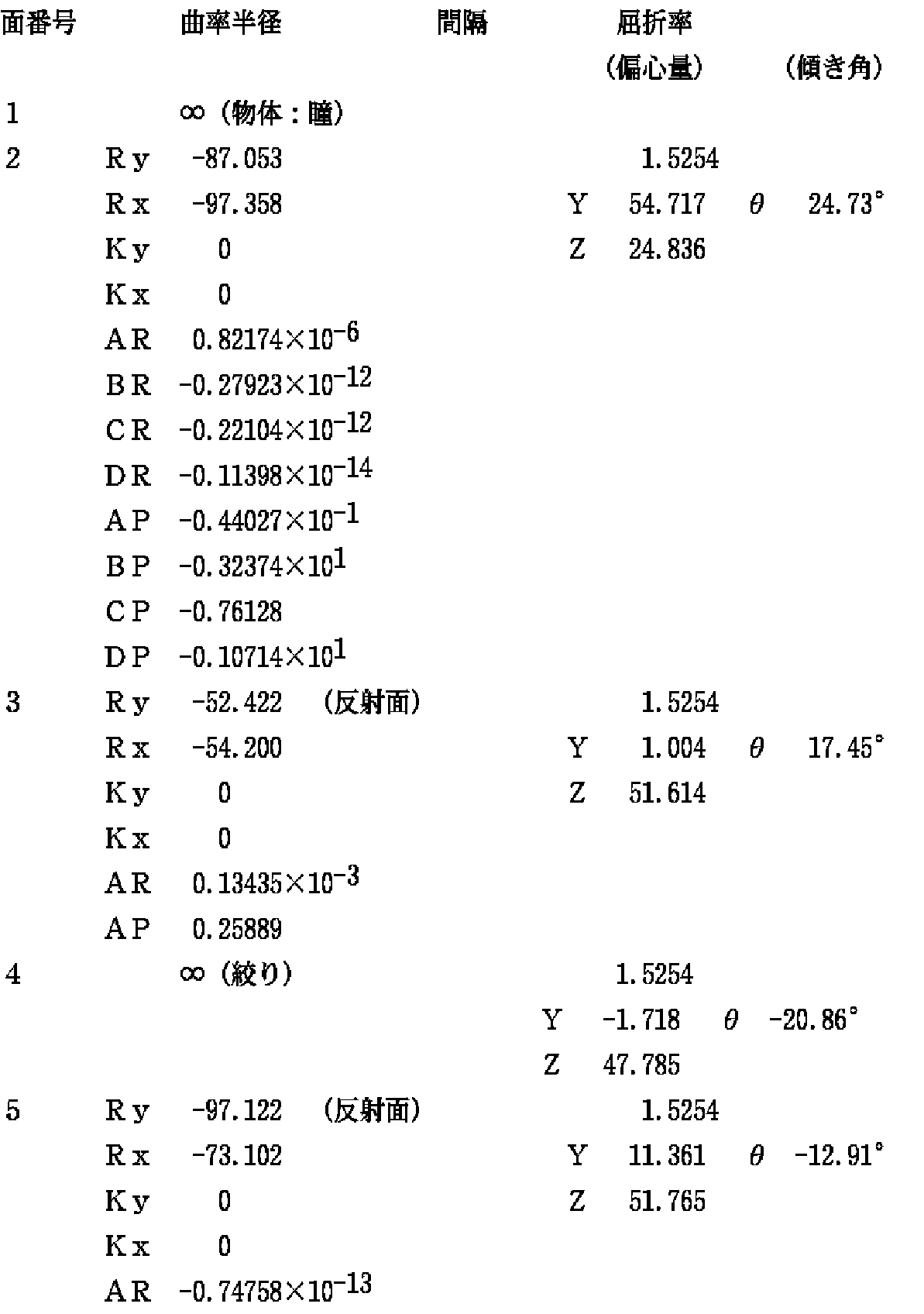 また、特開平8−179223号においては、変形プリズム15の第3面18の傾き角θを20°≦θ≦40°に設定している。しかし、この条件は好ましくない。その理由を説明する。