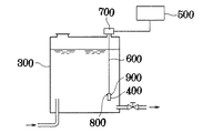 これは、図8に示すように、高架水槽300 内に吊下げられる一対の電極を設けた装置本体400 と、同装置本体400 の電極に電力を供給する駆動制御部500 と、両者を電気的に接続するとともに、吊下げ用ワイヤを兼ねたケーブル600 とを備えている。なお、700 はケーブル600 の中途に設けた吊支用器具である。