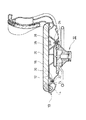 図3は、図2のIII-III線に沿った断面図である。シェル(10)の座部(14)は、ブロー成形によって一体的に形成された上部シェル(14a)及び下部シェル(14b)からなっている。ねじ取付部(24)は、上部シェル(14a)及び下部シェル(14b)の前記4箇所の部分を、ブロー成形時に、それぞれ下方及び上方に凹入成形して、この凹入成形された部分同士を、互いに圧接又は一体化することによって形成されている。これらのねじ取付部(24)には、図1で示した取付ねじ(22)用のねじ挿通孔(24a)が穿設されている。