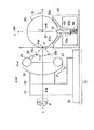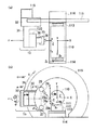 第2の試断面の結晶方位測定を行う結晶方位測定装置としては、例えば、図34に示すようなものがある(特開平2−31145号公報)。結晶303は、その試断面を下方に向けてヘッド302に取付けられ、ヘッド302は測定時、ヘッド回転軸318で回転され、X線回折位置Aにセットされる。結晶方位測定装置310は、本体314に取付けられたX線発生器311とX線検出器312により試断面にX線を照射し、回折X線を測定する。照射角は水平面に対し結晶面で決まる回折角、θ0 に設定される。本体314は下部に回転支持ベース316がありスライシングマシン301に取り付いた案内板317の上で水平面内で90゜回転でき、回折測定面をx,y方向に切換えできる。まず、図のように回折測定面をy方向に設定し、y方向微調ツマミ321で結晶303をy方向に傾斜させながらX線検出器312の出力ピークを探し、固定する。次にx方向に切換え、x方向微調ツマミ320で同様にx方向の調整を行う。これにより結晶面が水平になるように結晶303が傾斜される。次にヘッド302を90゜回転させ、カッタ位置Bに設定し、結晶303を切断カッタ304側に送り出し薄板に切断する。切断カッタ304は水平に固定されているので結晶面に沿って切断できる。