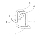従来提供されているこの種鉄筋受けの代表的な例の一つとして、図16に示すような構成のものを上げることができる。この場合、鉄筋受架部1′を、例えばU字状に形成すれば、鉄筋を該受架部1′内に摩擦嵌合状態に嵌め込むことができるが、従来構成のものでは、前後一対の門型部2′を構成要素として含み、且つ自立性を得るために門型部2′,2′間にかなりの間隔をあけて連成部3′を形成することが必要になり、形状的に大きくなり嵩張るという問題点がある。 第1発明によれば、螺旋巻回により正面U溝状の鉄筋受架部4を形成する構成になっているので、形状的にコンパクトとなり小型で嵩小となり、輸送保管に場所をとらず便利である上、配筋作業時等の使用取り扱いも容易になる。