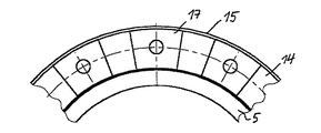 図4と5に断熱層の別の実施の形態を示す。図4により与えられる絶縁板17は肩部分15の外周で同一面的に境界を接し、かつ内側でボス5の上にある。図5は連続して配設されかつ図3及び4による実施の形態に比較可能な方法で半径方向外側に肩部分によって支えられる絶縁リング19としての断熱層の形状を示す。