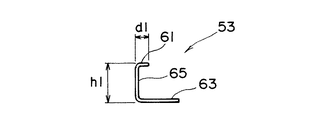 C型鋼53は、図2に示すように、上片61、下片63が起立片65で連続する断面C字形状を有する。このC型鋼53は、下片63が重量受けプレート51に溶接等によって固定される。重量受けプレート51に固設されたC型鋼53は、起立片65が押出成形セメント板43の裏面67に当接する。このC型鋼53は、例えば厚みが3.2mm以上、上片61の幅d1が15mm程度、起立片65の高さh1が45mmで形成される。